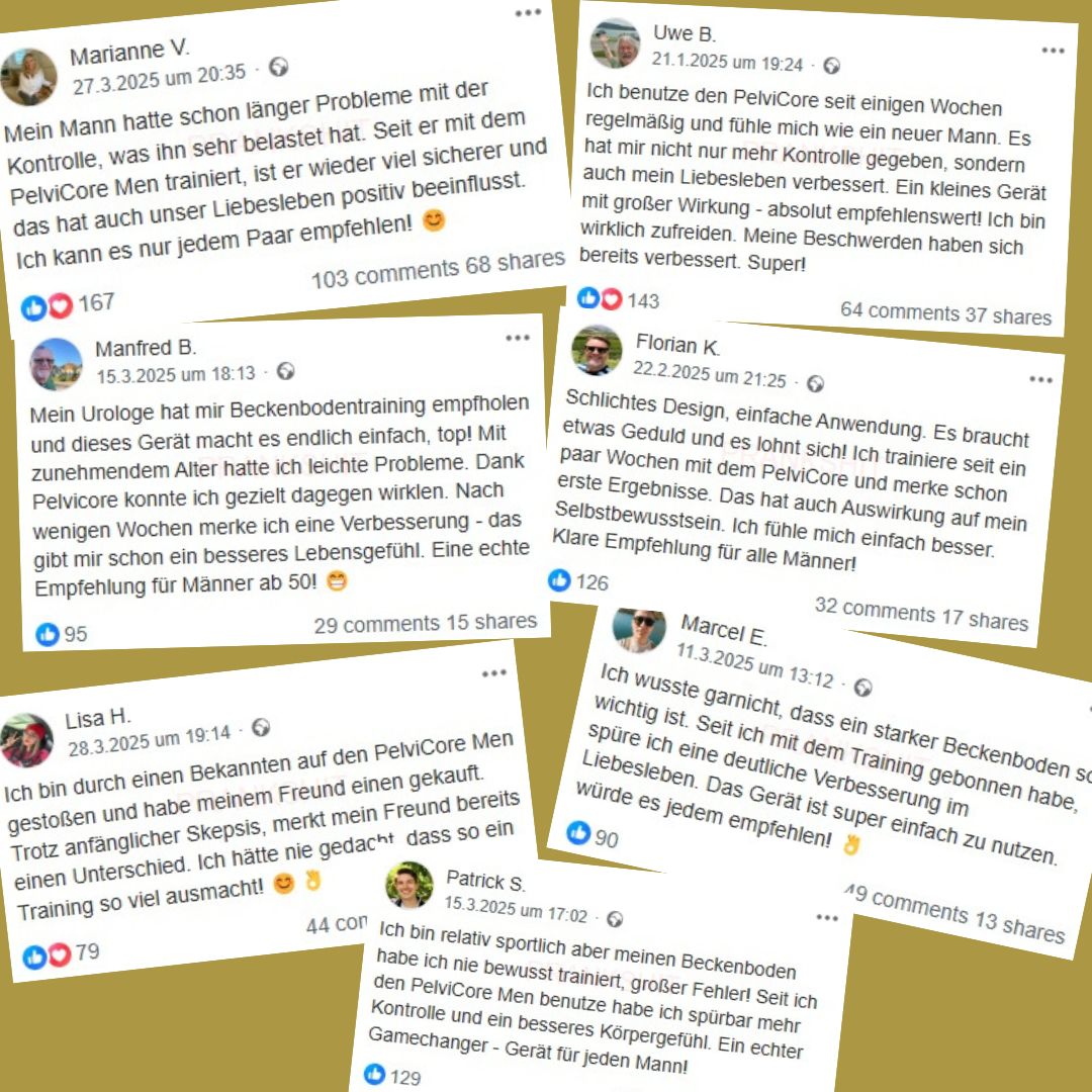 "Ich habe PelviCore Men auf Empfehlung meines Arztes gekauft und bin positiv überrascht. Schon nach wenigen Wochen spüre ich mehr Kontrolle und Sicherheit. Einfach anzuwenden und absolut empfehlenswert für jeden Mann!" -Jens R.